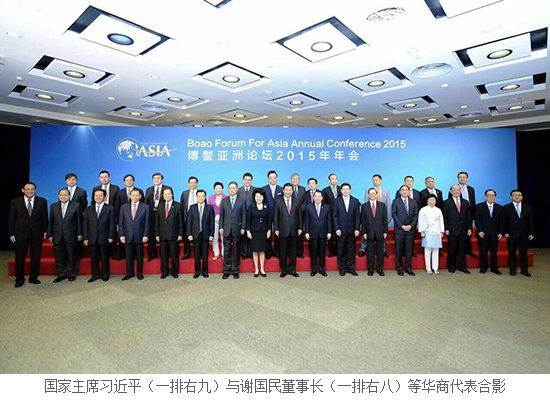 3月26-29日,博鰲亞洲論壇2015年年會在海南省博鰲舉行,本屆年會主題為“亞洲新未來:邁向命運(yùn)共同體”。3月28日,國家主席習(xí)近平出席了年會開幕式,發(fā)表了題為《邁向命運(yùn)共同體 開創(chuàng)亞洲新未來》的主旨演講,并與正大集團(tuán)謝國民董事長等出席博鰲亞洲論壇2015年年會的華商代表合影留念。